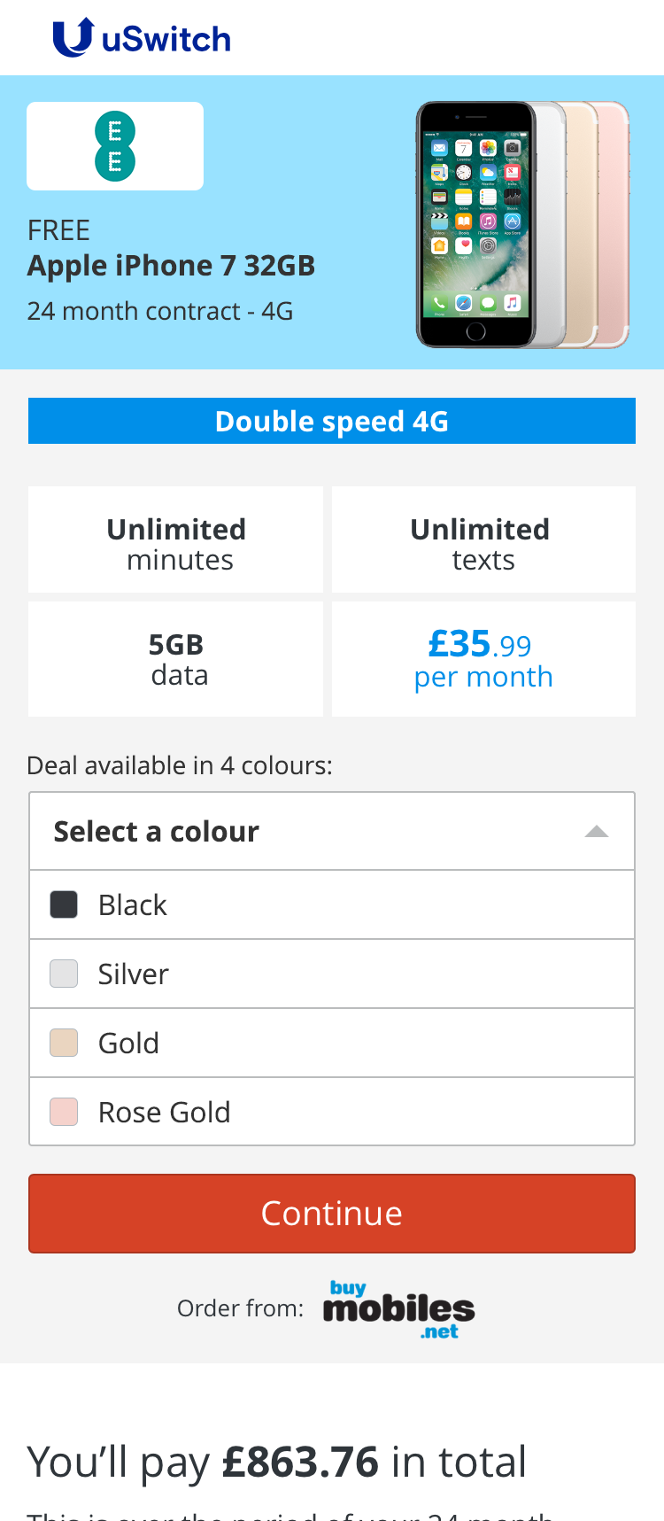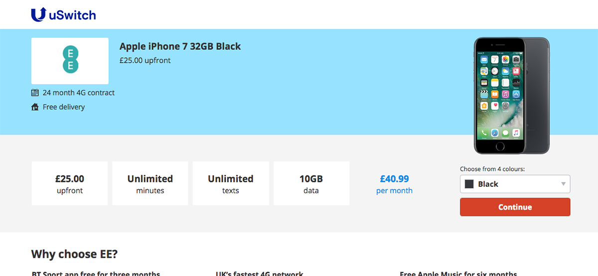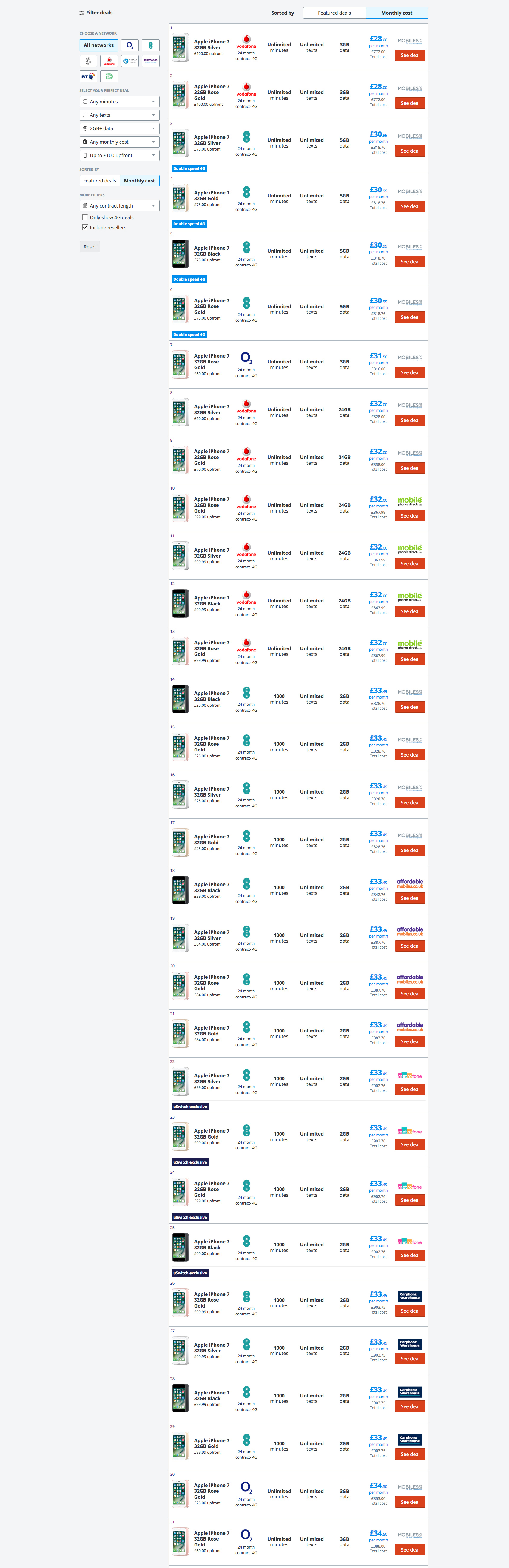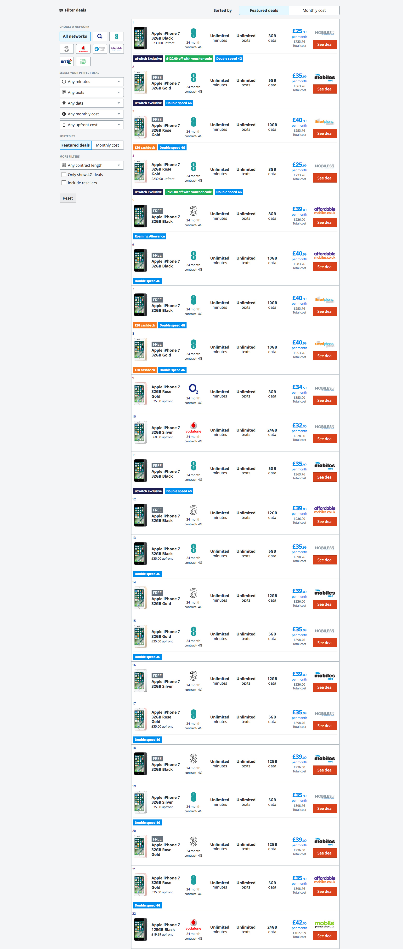 The iPhone 7 as an example, with 6 colours, means a single deal potentially takes up 6/10 of the product table. This reduces customer choice, increases customer effort and gives the appearance of a narrower range of deals available.