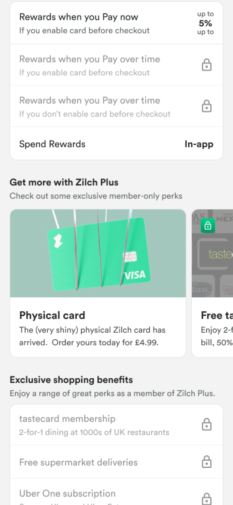 New features for Plus, including physical card integration, tastecard partnership, and additional membership tiers like Pro.